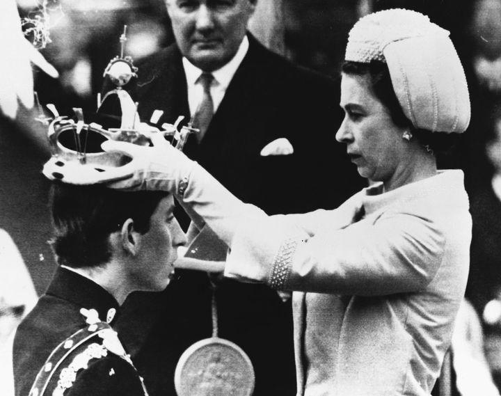 ウェールズのカナーヴォン城にて、母エリザベス女王から「プリンス・オブ・ウェールズ(ウェールズ公)」の称号を授与されたチャールズ国王。当時20歳でケンブリッジ大学在学中であった。