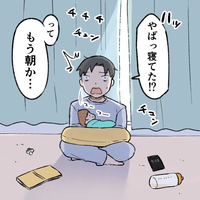 反省して徹夜を決意した俺は、はじめて夜の授乳と寝かしつけにチャレンジ。ミルクを飲ませて寝かせるだけだし楽勝と思っていましたが、現実はそんなに甘くありませんでした。どれだけあやしても泣き続ける娘に、俺の睡眠時間は刻一刻と削られるばかり。俺はようやく、普段ゆきのがどれほど過酷な日々を送っていたのかを思い知りました。