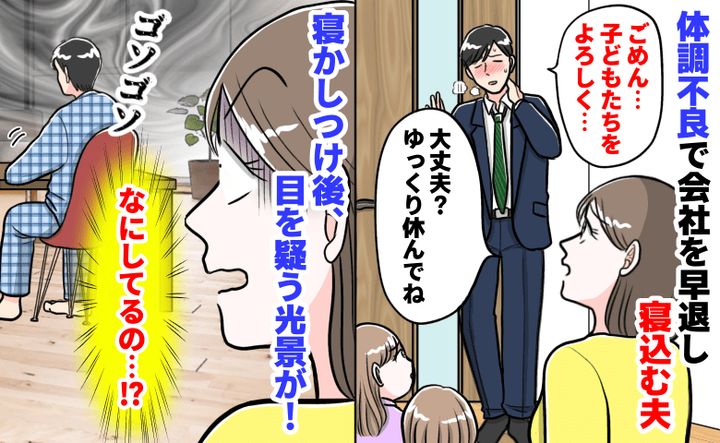 いつも残業ばかりで子どもが寝た後に帰って来る夫。そんな夫が突然、仕事を早退し帰ってきました。そして「体調が悪い」と言い残し、1人寝室へ……。