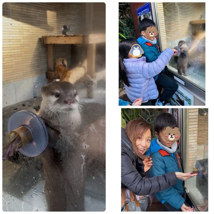 カワウソ、可愛すぎませんか?エサを全部上げたい子供にお願いしておすそ分けしてもらいました。この水族館のエサやりは当日の決まった時間からガチャガチャに入っているエサを先着順で購入し、あげるという流れです。この事前予約じゃないシステム、当日に決められるのでとてもありがたいです。年末の時期でもそんな混まずに買えました。