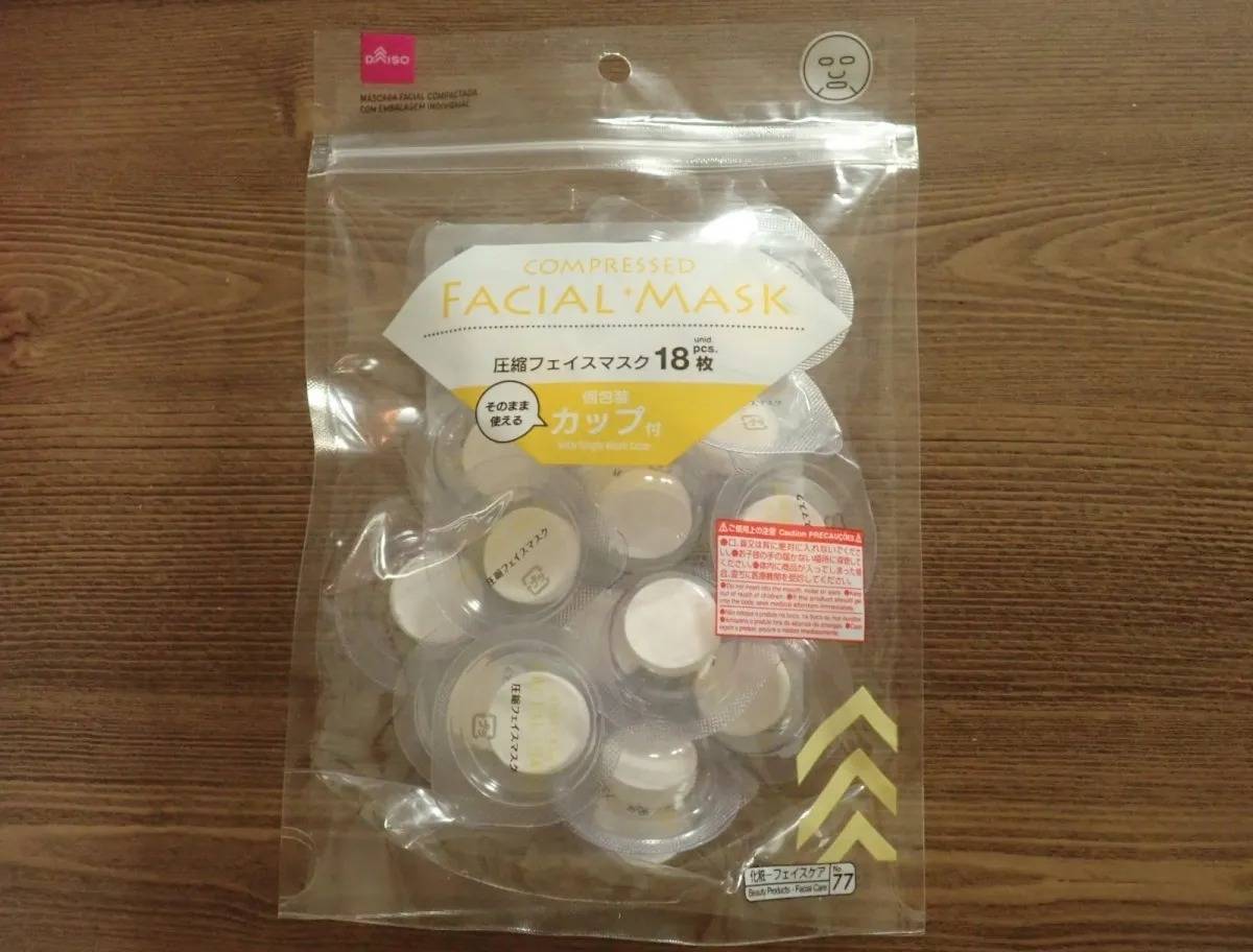 化粧水を浸透させるだけで使えるのが、DAISO(ダイソー)の「圧縮フェイスマスク(個包装カップ付、18枚)」♪