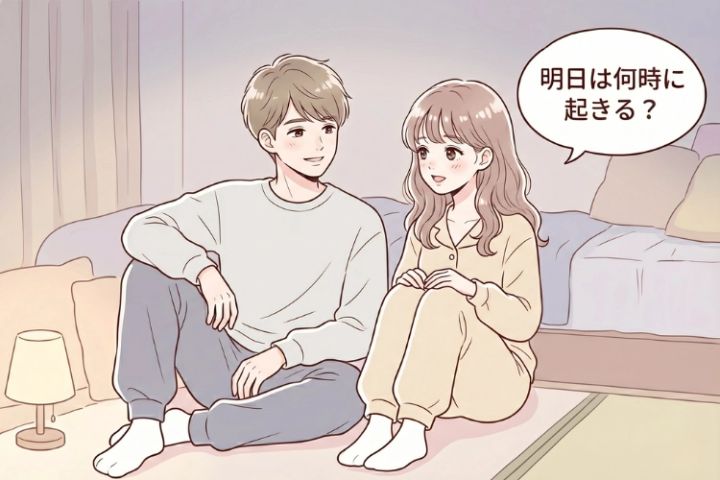 朝起きる時間や夜寝るタイミング、お風呂の順番などについて、さりげなく確認しておくと◎