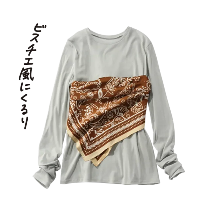「スカーフは大判なものを選ぶと、いろんなアレンジが楽しめます。いろんな柄があれば旅先でも別人なコーデにできてオススメ」