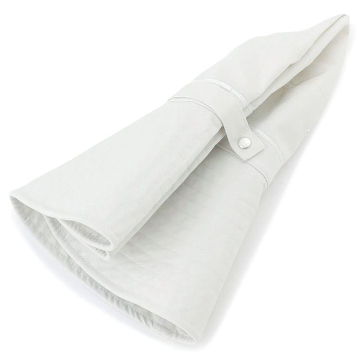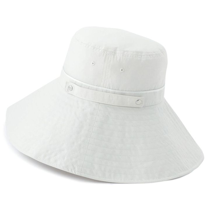 広いつばが、顔回りを日差しからガード。折りたたんでテープでとめることができるため、持ち運びにも便利。綿100%(本体)。キンセキカット 帽子 ライトグレー 3289円/株式会社AOKIお客様相談窓口 https://www.aoki-style.com/special/support/