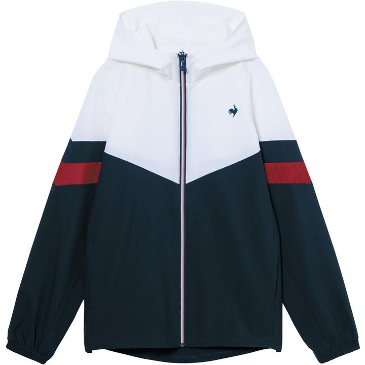 撥水加工を施したストレッチ素材で、ソフトな風合い。お尻が隠れる長め丈が嬉しい。スポーツシーンにも日常使いにも。ルコックスポルティフサンスクリーンクロスジャケット 8910円/デサントお客様相談課☎0120-46-0310