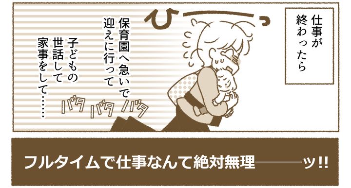 寝不足で体もつらいなか、仕事をして、仕事が終われば急いで保育園に迎えに行って、そこから家事をして……できる気がしません。
