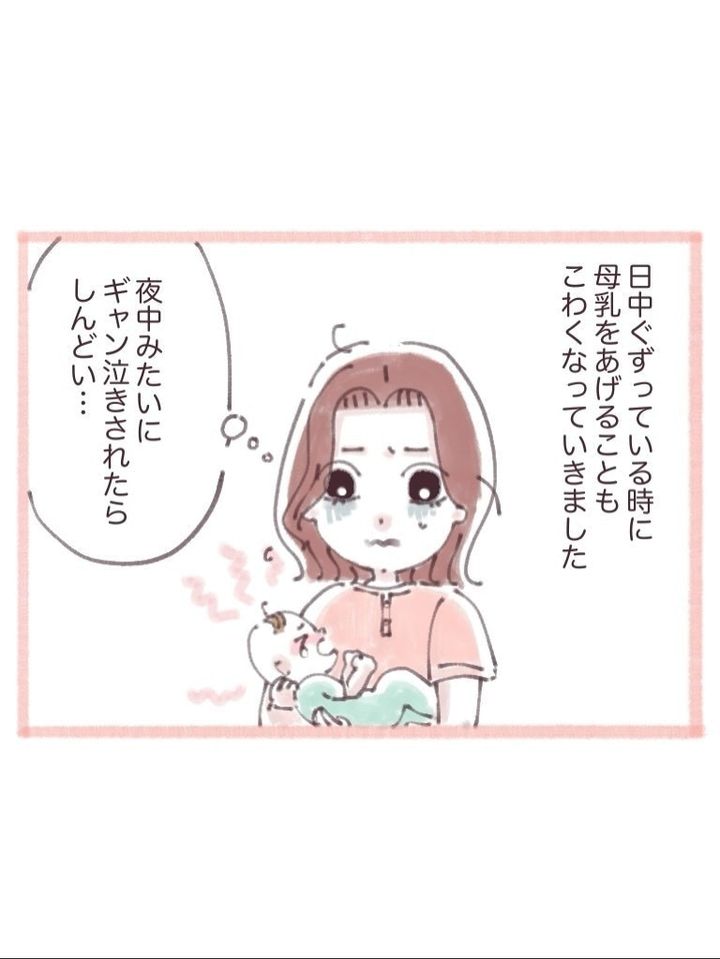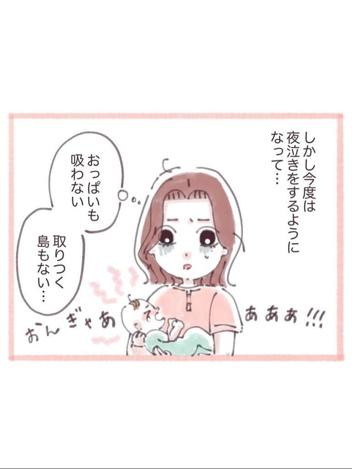 母乳を拒否するようになってしまったわが子に対して、何とかミルクとの混合で母乳をあげていました。しかし、激しい夜泣きにあい、りなさんは心身ともに限界を感じ始めます…。
