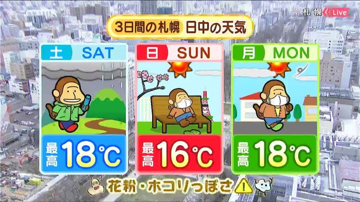 3日間の札幌です! 土日月の天気をもんすけでお伝えします!