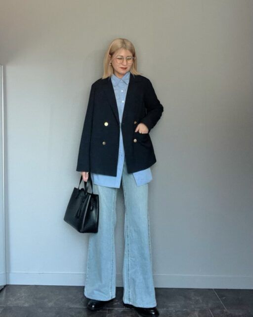 テーラードジャケットなら羽織るだけで上品さがプラスできますよ。カチッとし過ぎていないストレッチ性に優れた素材や、ウォッシャブル仕様のジャケットなら気負わず取り入れられるはず。ジャケットの下はブルーのシャツ×デニムパンツでカラートーンを合わせると、洗練ムードたっぷりな仕上がりに。