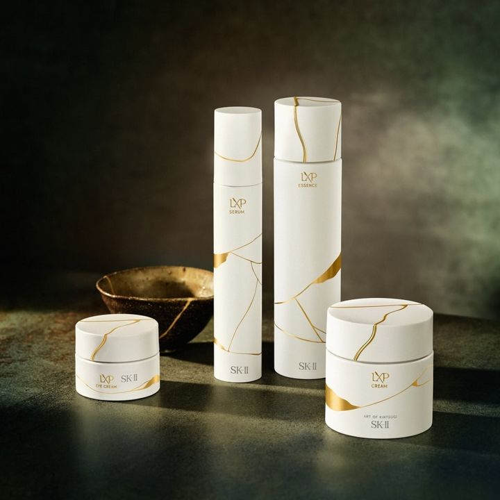 SK-IIは、これまで「肌にとって敵」と思われがちであった「時」に着目しました。「重ねる時を味方につけ、停滞を打破するような右肩上がりのスキンケアはないものだろうか。」という問いの中〝時” を重んじる陶磁器の伝統的な修復技法 “金継ぎ”に着目。“金継ぎ”は単なる修復技術ではなく、欠けたり割れたりした陶磁器を漆で結びつけ、金をあしらって修復することで新たな美しさへと価値を見出す匠の技。SK-IIはこの“金継ぎ”の哲学をスキンケアに置き換え、時を経て大切に育まれた肌に、新しい美しさを創造する 「SK-II LXP 金継ぎ」が誕生しました。「SK-II LXP 金継ぎ」シリーズの核となるのは、SK-II独自の天然由来成分ピテラを、限界まで濃縮した“超濃縮ピテラ”と、ゴールドシルクセリシン。“SK-II LXP 金継ぎ”は、「美の結合力」を高め、弾むようなハリ、輝き…時がたつほどに、全方位に異次元の美しさへと導きます。