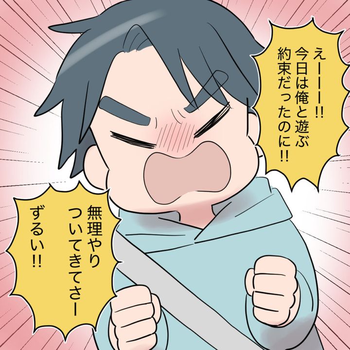 しかし、タイガ君はそれで納得するはずありません。「えー!今日は俺と遊ぶ約束だったのに!無理やりついてきてさ、ずるい!」そう言って、駄々をこねるように大きな声をあげました。