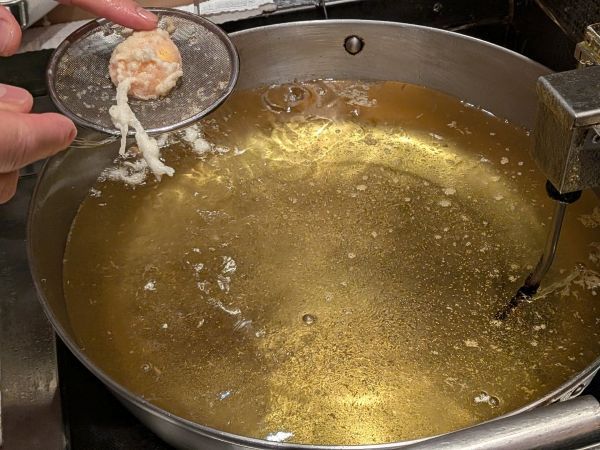 卵黄の天麩羅は、スピード感が見事!