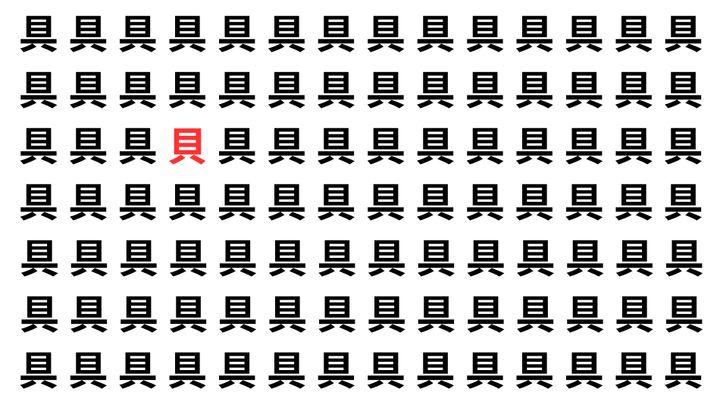 並んだ漢字の中に、ひとつだけ異なる文字が紛れています。集中して探し出し、気分をリフレッシュしましょう!