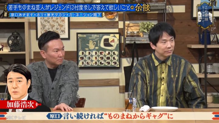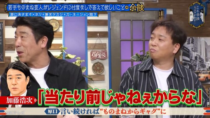 原口あきまさが、繰り返しものまねしていた極楽とんぼ・加藤浩次から思わぬツッコミを受けた過去を明かした。