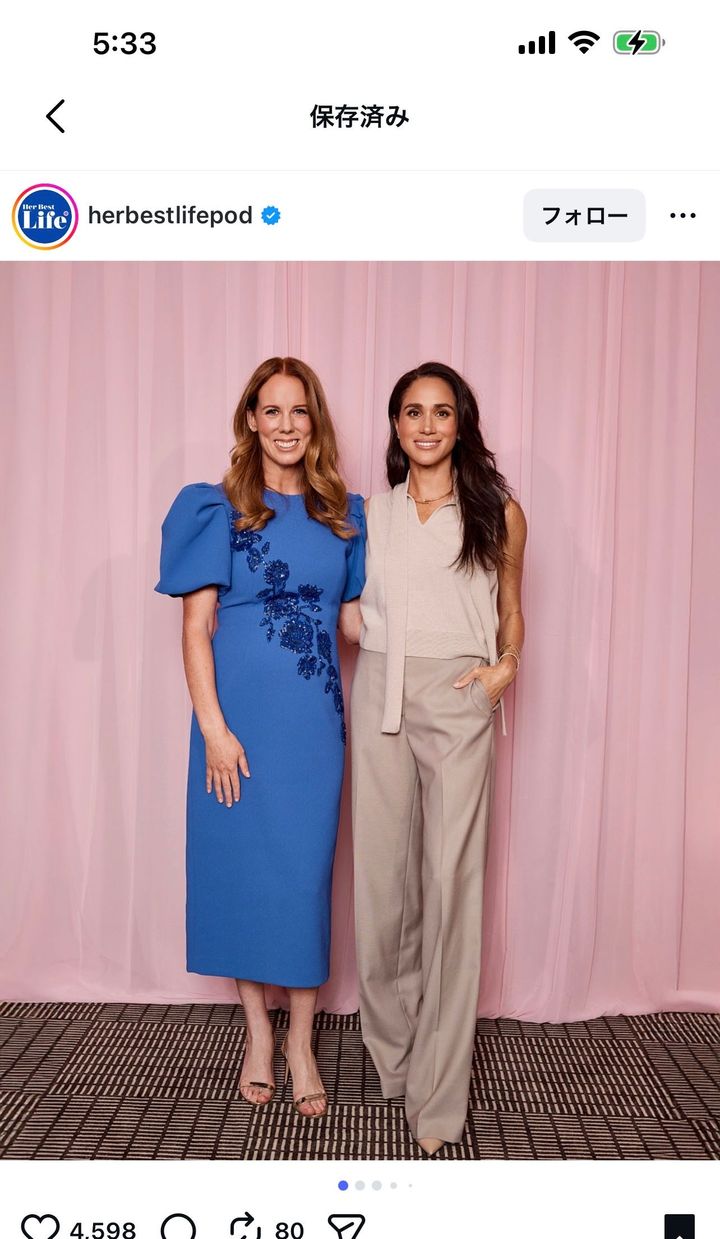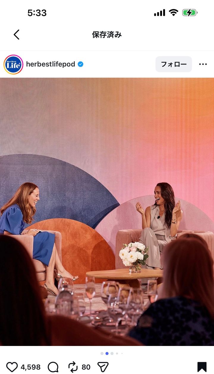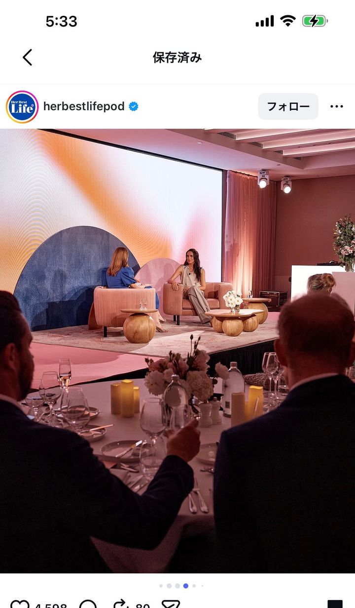 会場にはヘンリー王子の姿もあった。女性限定のイベントだったため、会場にいる男性はごく少数。そのため王子の姿は嫌でも目立った。王子は会場に入ってくる妃をスタンディングオベーションで迎えるとキス。妃がステージに上がるのをサポートすると、最前列のテーブルについた。妻が嘆くのを熱心に聞いていたという。主催者がインスタグラムに投稿した写真にも王子の後頭部が写っている。