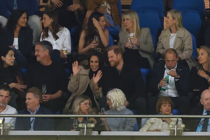 話を終えると妃はすぐに退場。午後7時には会場から姿を消していた。妃はその後、王子と共にスタジアムへ。オーストラリアやニュージーランドのプロチームによる大会「スーパーラグビー」の試合を観戦した。新聞「デイリーメール」によると2人はVIPエリアで大はしゃぎ。「妃はヘンリー王子の膝に手を置いて、笑みを浮かべていた」と報じられている。