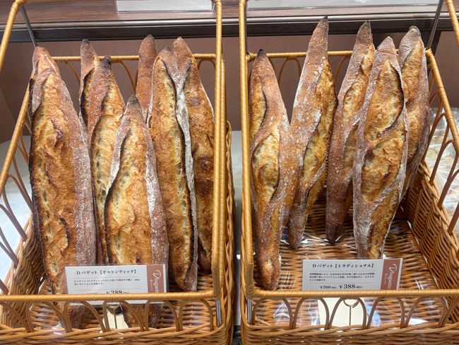 店名にもあり、ブランドを象徴する「D.バゲット」(388円)は、製法が異なる2種を用意。皮が薄くパリパリ食感の「トラディッショナル」と、ザクッと厚い皮の「オートンティック」はお好みで。国産小麦とフランス産小麦をあわせ、ゆっくりと発酵させることで、小麦本来の甘みが引き出されます。