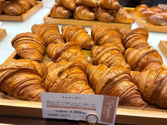 続いては、シェフこだわりのフランス産の最高級発酵バター「A.O.Pバター」を使った「クロワッサン」(388円)。皮はバリバリ、中はもっちり。バターの香りが際立つよう、折り込みの層を少なくしているそう。