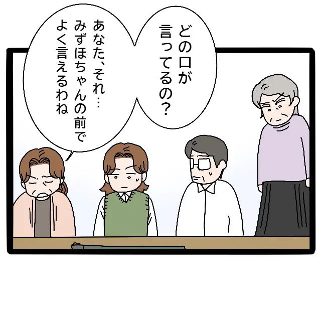 千恵おばちゃんは「どの口が言ってるの?あなた、それ・・みずほちゃんの前でよく言えるわね」と呆れたように言いました。父は千恵おばちゃんの言葉に気まずそうにしていましたが、