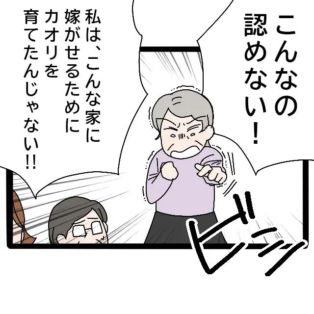 母は「こんなの認めない!私は、こんな家に嫁がせるためにカオリを育てたんじゃない!!」と怒りに震えながら隆明に意見してくれました。