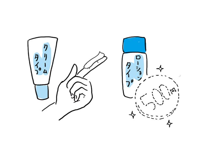 表示されているSPF・PA値の効果を発揮するには、「規定量」を守ることが必須。クリームタイプは指1 本分、ミルクやローションタイプは500円玉大が目安です。「思っている以上にたっぷり」がポイント。