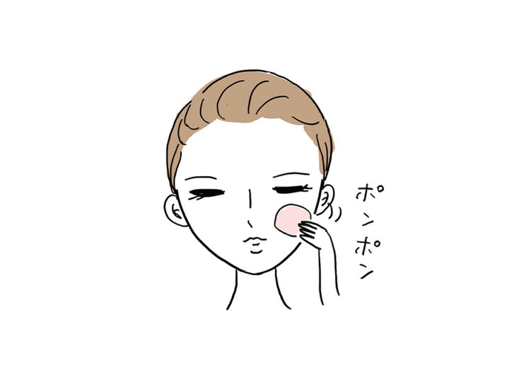 最後にスポンジでかるくポンポンと押さえると密着度がアップ。ファンデーションを重ねてもよれにくくなります。目の下やまぶたなど目もとの細かい部分もやさしくなじませて。