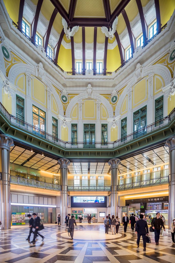 丸の内北口・南口に広がるドーム内部が見どころのひとつで、天井には鷲のレリーフや干支の装飾が配されている。細部にまで意匠が施された空間は、駅舎が単なる交通施設にとどまらず、日本の高度な建築技術や芸術性を世界に示す場でもあったことを物語っている。