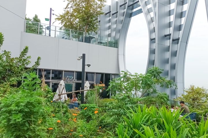 蛇行した小道を散策したり、ベンチに腰掛けて休憩したりと、自然の息吹を感じてください。ここで育てられた果樹や食用植物がスカイガーデンに隣接するレストランで使用されていますので、ドリンクを飲みながらゆったり休憩して至福の時間を過ごしてはいかがでしょうか。