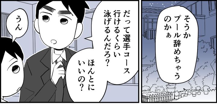 息子が幼稚園の頃から続けていたスイミング。息子は選手コースにいけるまで上達しました。しかし、本人はもう満足しているようで、このまま続けるにも、仲良しの友だちたちが選手コースにいってしまうため、スイミングを辞めることにしたのです。