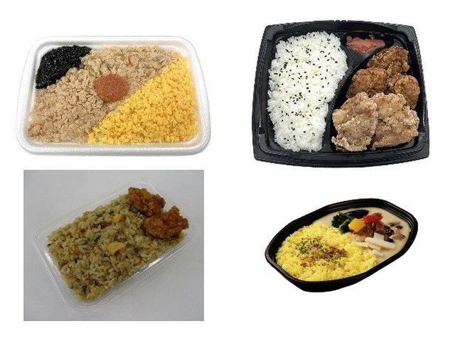 鮭フレーク、玉子そぼろ、海苔佃煮、明太ソースを盛付けた御飯です。 カロリー:372kcal 【販売地域】茨城県、栃木県、群馬県、埼玉県