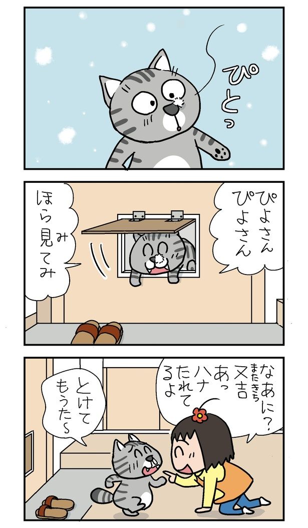 全国新聞11紙で毎日掲載され、昨年3000回を超えた人気作品『ねえ、ぴよちゃん』。いつも元気な小学生のぴよちゃんは、両親と中学2年の兄、猫の又吉の4人と1匹で暮らしています。又吉はぴよちゃんが生まれたころから大の仲良しな賢い猫で、人間の言葉もわかっていて…!? ぴよちゃんと又吉のコンビが、優しい両親、ちょっと反抗期の兄、個性的な同級生たちなどのさまざまな登場人物とともに、あたたかくて楽しい騒動を繰り広げます。ダ・ヴィンチWebでは、今年で10年目を迎える本作の中から、なんと青沼貴子先生が選んだ傑作選をお届け! 幼児から90代まで、幅広い人たちに愛される『ねえ、ぴよちゃん』をお楽しみください。