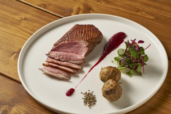 名称:鴨肉のロティ ローズヒップソース 価格:3,850円 提供場所:CODA ROSSA 詳細:香ばしく焼き上げた鴨肉に、 ローズヒップの爽やかな酸味を合わせました。華やかな香りとともに、上品な味わいを堪能できます。