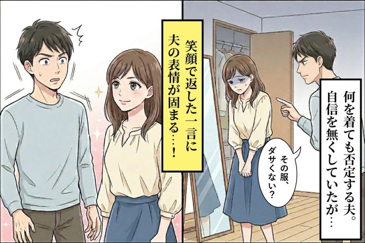 夫は私の服装によくケチをつけます。「その色変じゃない?」「なんかダサくない?」。毎日のように言われ続けて、私は自分のファッションに自信がなくなっていました。でもある日、私は笑顔である言葉を返しました。夫は一気に黙り込みました。