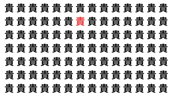 たくさんの「貴」の中に、よく似た別の漢字が1文字だけ隠れています。