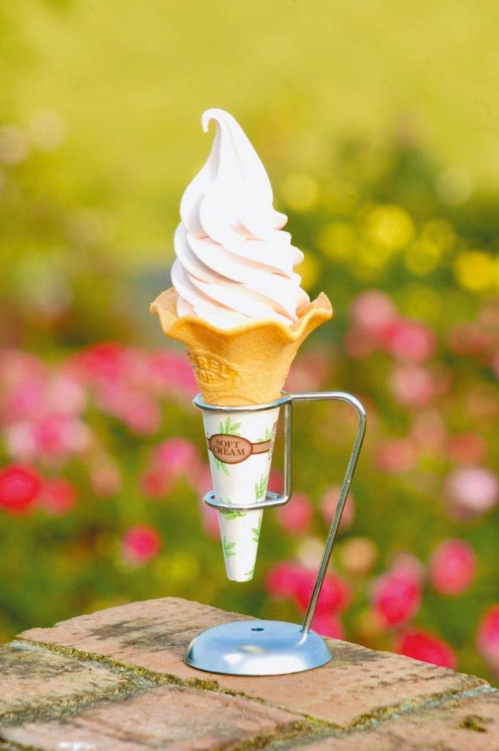 レストラン「ローズダイナー」にはバラにちなんだメニューが豊富。ほのかにバラの香りがする「ばらソフト」(400円)も人気。