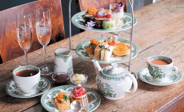 中庭にあるカフェ「イージータイム」では「ガーデンアフタヌーンティー」(4950円/WEB予約制)が楽しめる。