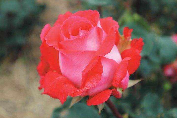 「プリンセスかのや」は鹿屋市のオリジナル品種。大輪八重咲きで、花びらは表が赤、裏が白。香りが強い。