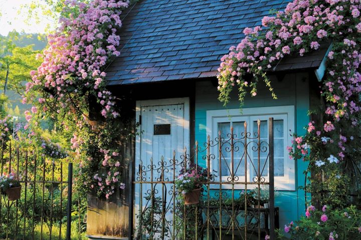 英国王立植物園キューガーデンで生まれたつるバラ。満開の時期は小屋がバラで覆い尽くされるほど咲き誇る。