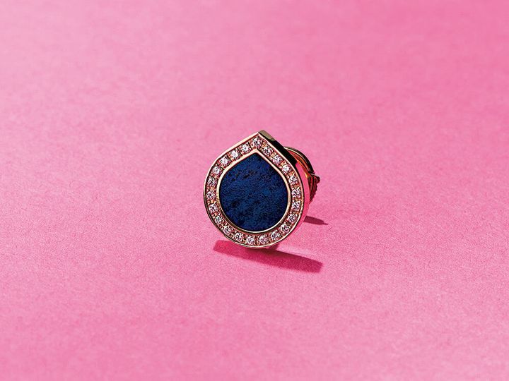 涙型と深い青色が印象的。キラキラ光るダイヤも魅惑的。ピアス「アンティフェール・クロマティック」〈PG×ラピスラズリ×DIA〉(レポシ/レポシ日本橋三越本店)