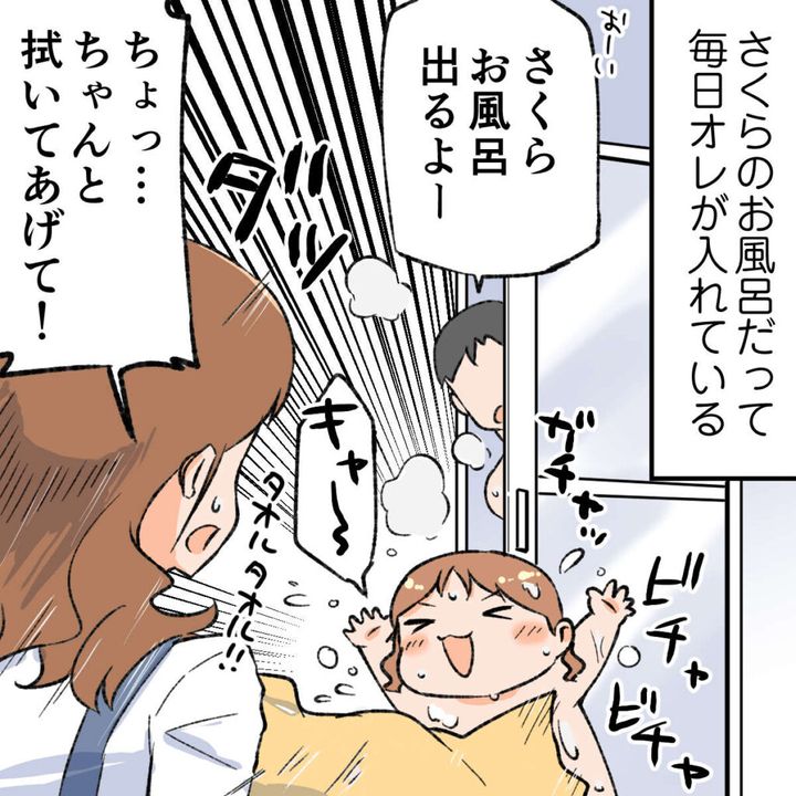 パパですから、さくらのお風呂も毎日俺が入れています。全身をきれいに洗って、あとはゆきのにパス。お風呂は大変だと思うので、ゆきのに負担がかからないよう俺が担当しています。我ながら、なかなか良いパパではないでしょうか。