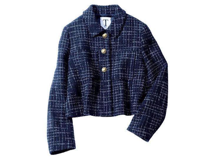 ネイビーツイードが担保する端正さを頼りに、大人のミニスカを堪能。