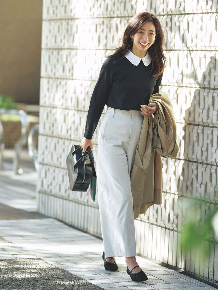 パンプス感覚で履けるのに歩きやすい、40代のオシャレに欠かせないフラットシューズ。でも、やはりヒールがない分、“スタイルアップ”力は弱い…?なんて思い込んでいる人もいるのでは。そこで今回は、ぺたんこでもスタイルが良く見えるキレイめ春コーデをお届けします。通勤や、きちんと感が欲しいママ友ランチにもぴったりです◎