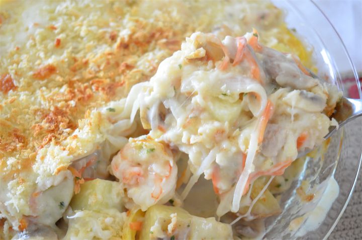 3. 【新じゃがレシピ】自家製ホワイトソースが絡む~♪エビ・チキン・春野菜マシマシ「豪華グラタン」作ってみた!