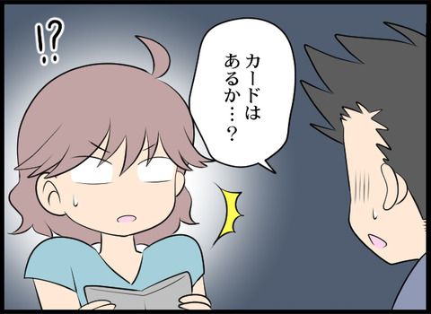 身に覚えのないカードの利用通知に青ざめる夫。幸い財布はあったけれど、中身がないことに気付いたサキですが…。