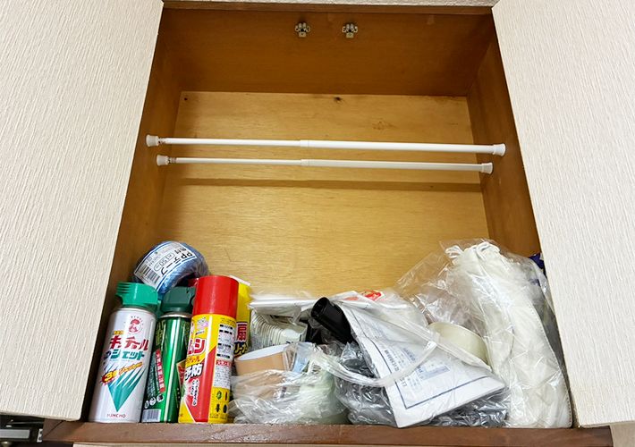 手順1:戸棚につっぱり棒を設置する