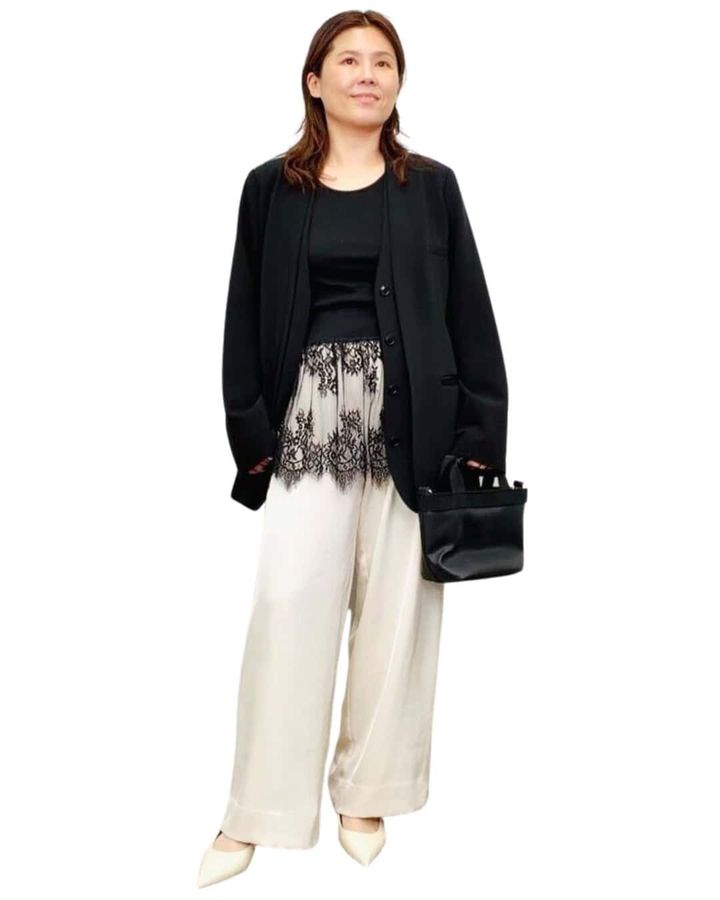 ①1枚あると便利な「レーストップス」はシーンレスに着回せる