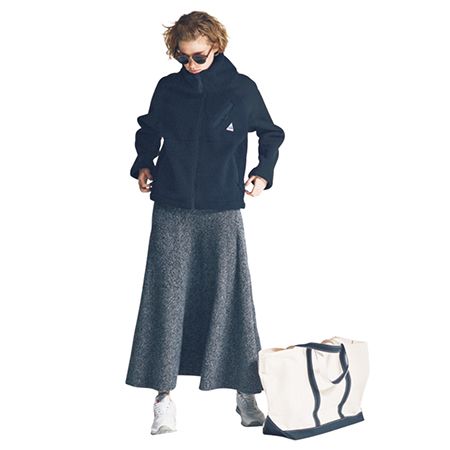 きちんとしたスタイルを、あえてスポーティな小物でくずすのが旬のバランス。ファッションとしてはもちろん、実用的な面でも使い勝手がいいため、白と黒のシーンを問わない色でセレクト。