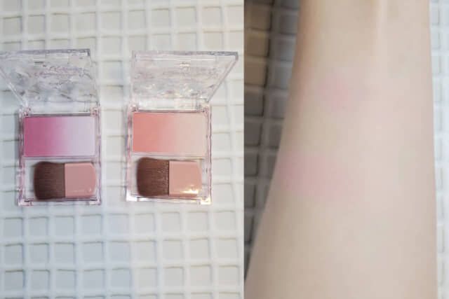 一度でグラデーションが完成する設計で、ふんわり広がるのに発色は自然。右側のハイライト部分を重ねれば、頬の高い位置に光を集めて立体感もプラスできます。パールが主張しすぎないため、肌から浮かず、大人でも取り入れやすい仕上がりでした。