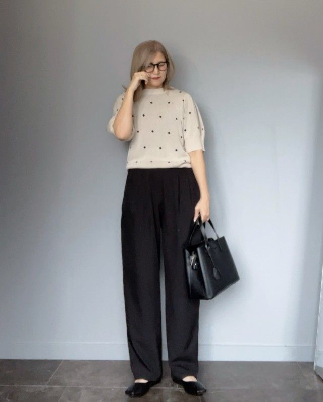 【40代の春コーデ6】「ドット柄」は落ち着いた色で甘さを引き算