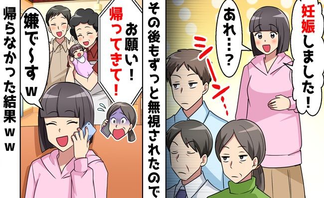 3. 「赤ちゃんできました♡」「……」喜ぶと思ったら全員沈黙!?妊娠で豹変した義家族に見切りをつけた結果